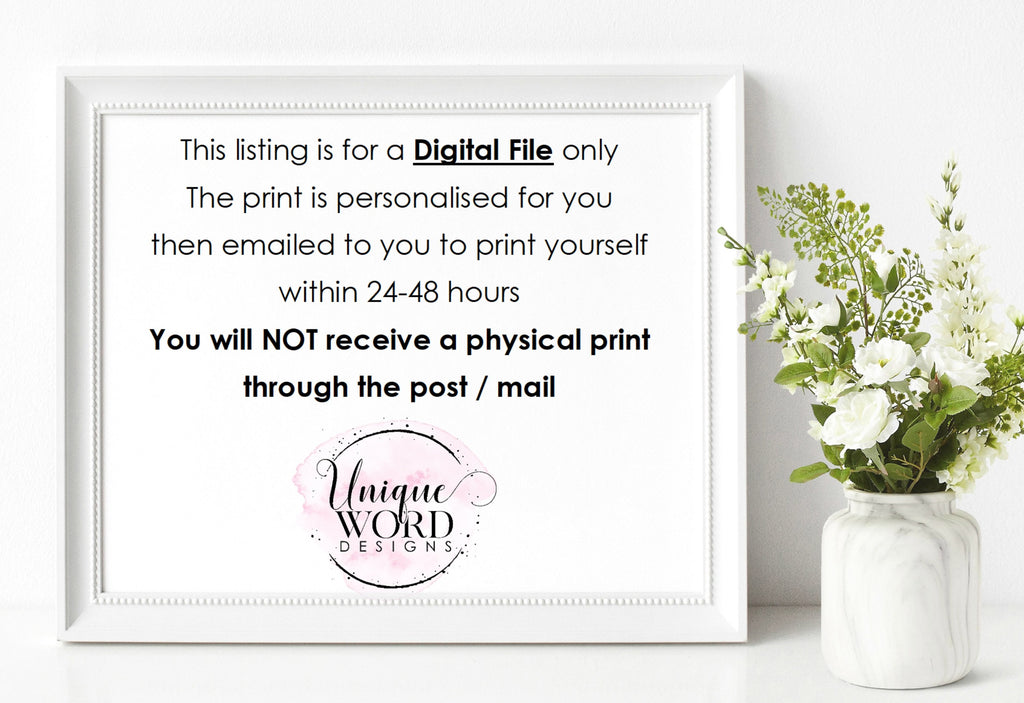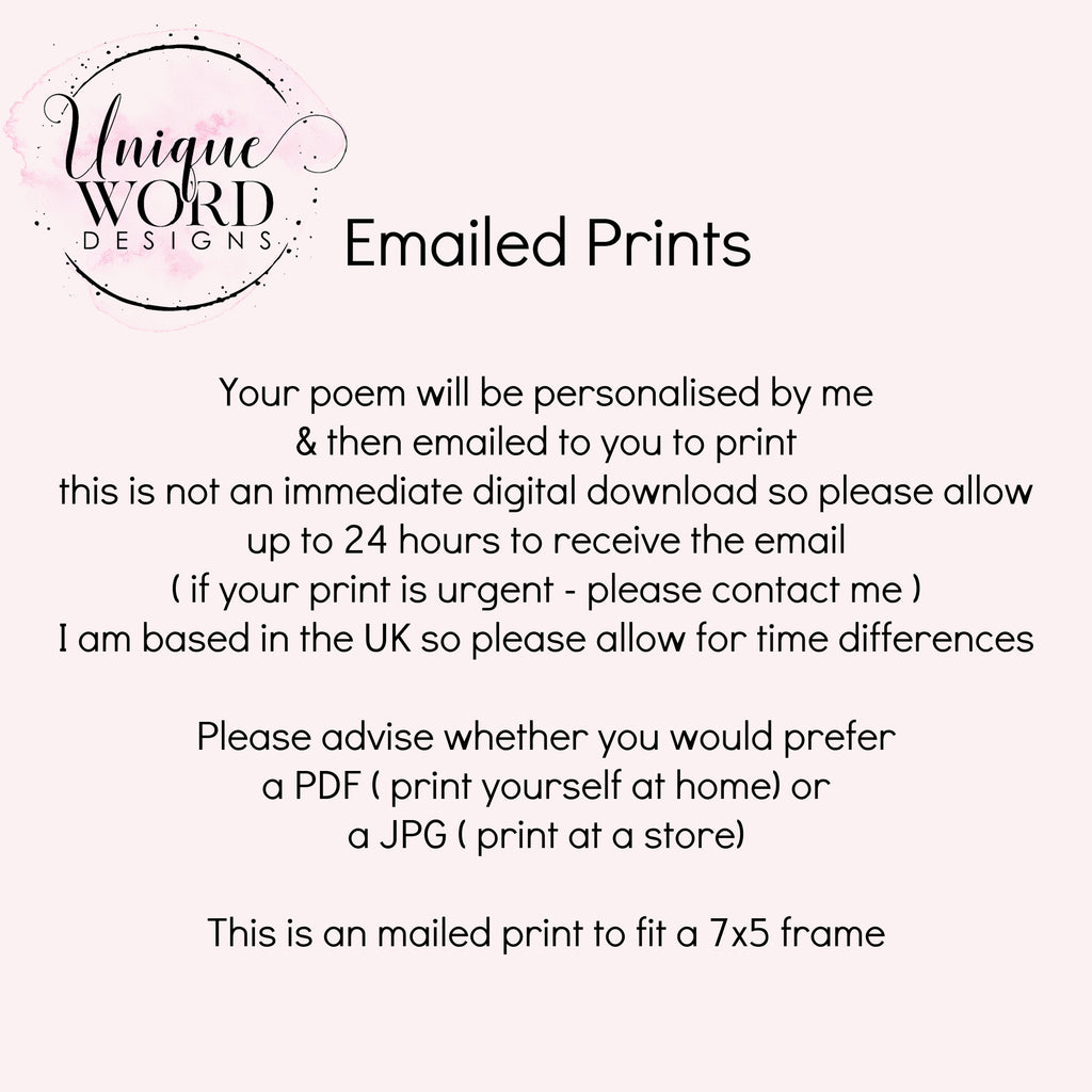 This personalised poem was written by Karen, Unique Word Designs so you can guarantee a truly unique gift